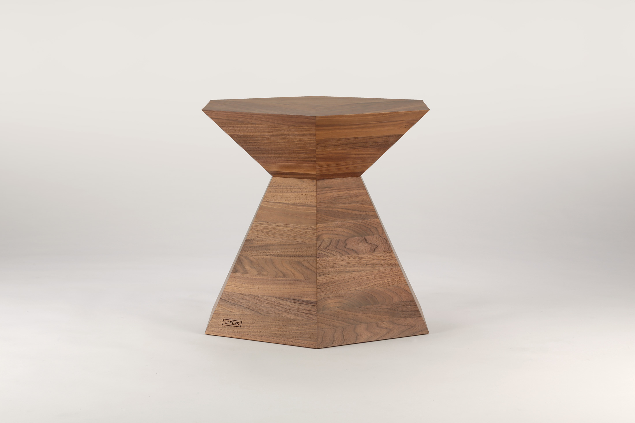 Hexagonal tea table with a shape that passes from its top surface through a narrow center to the floor almost monolithically, to render an unusual modern look. Its solid wood joins represent a true masterpiece of carpentry, reflected as an expression of minimalism. For those who adore clean and clear forms of superior elegance.